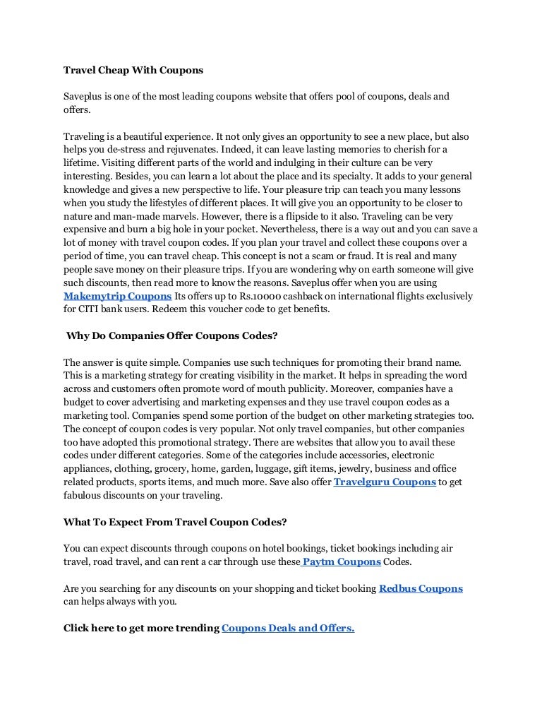 Travel Deals and Promo Codes | June 2022 - Promocodes.com Find promo codes and coupons from 17 Travel stores and brands. New offers added and verified June 29, 2022.