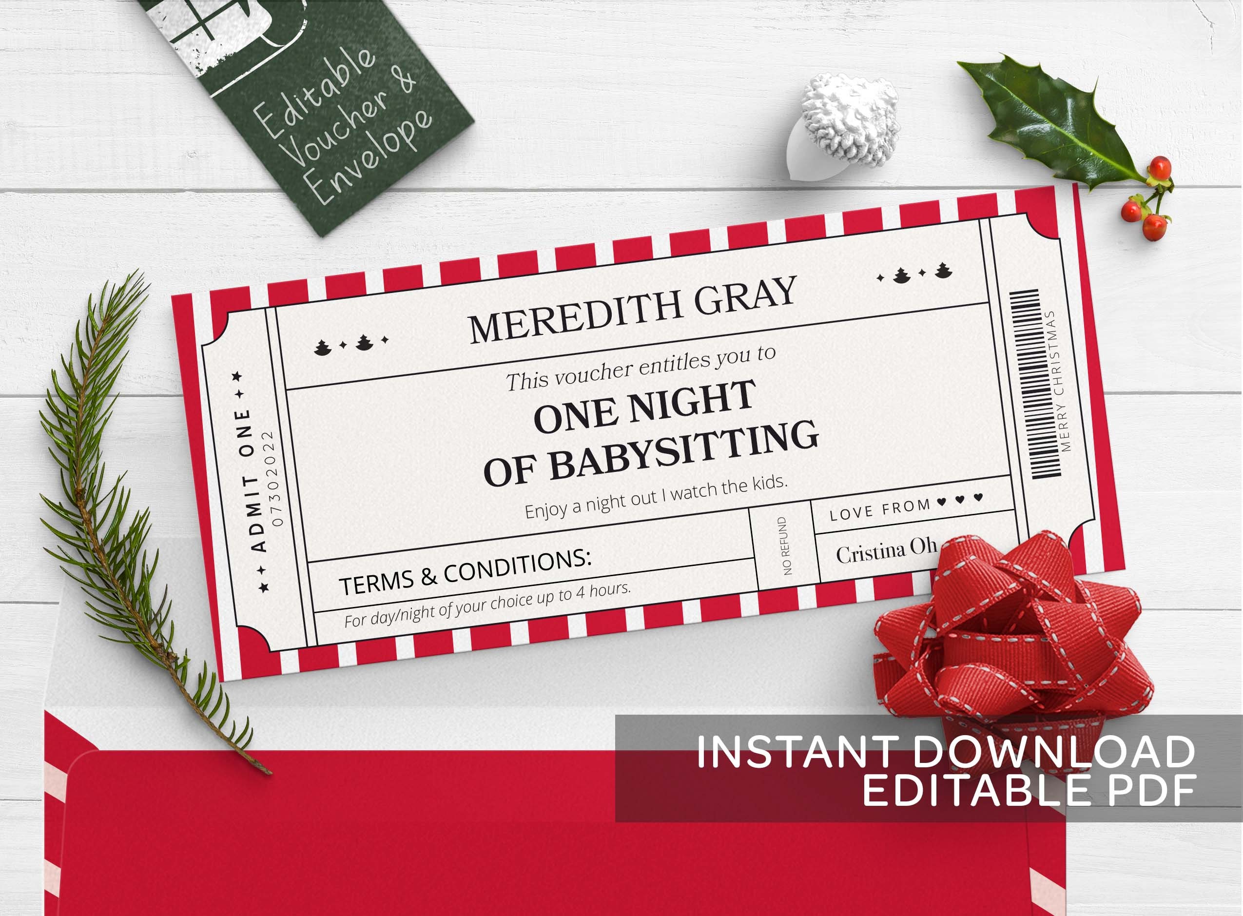 Printable Christmas Coupon Book Template | DIY Personalized Coupons 1. INSTANT DOWNLOAD Instantly download this printable Christmas Coupon Book template immediately after your payment has been processed. 2. PERSONALIZE AT HOME Open the template in the FREE Adobe Reader on your laptop or computer and simply start typing over my sample text.