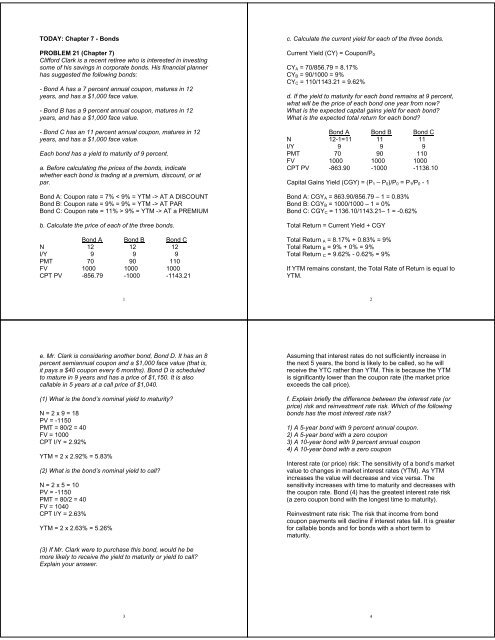 What is the yield to maturity for a 3 year bond with a 10% ... Jun 20, 2022 · The yield of maturity will be 10% itself , Option C is the right answer. The missing option are. What is the yield to maturity for a 3 year bond with a 10% annual coupon if the bond is trading at par? A) 11.00%. B) 9.00%. C) 10.00%. D) 9.75%. What is the meaning of Trading at Par ? At par means the bond or stock is trading at its face value , Answered: A 10-year bond with a 9% annual coupon… | bartleby Transcribed Image Text: A 10-year bond with a 9% annual coupon has a yield to maturity of 8%. Which of the following statements is CORRECT? * If the yield to maturity remains constant, the bond's price one year from now will be lower than its current price. The bond is selling below its par value. The bond's current yield is greater than 9%.